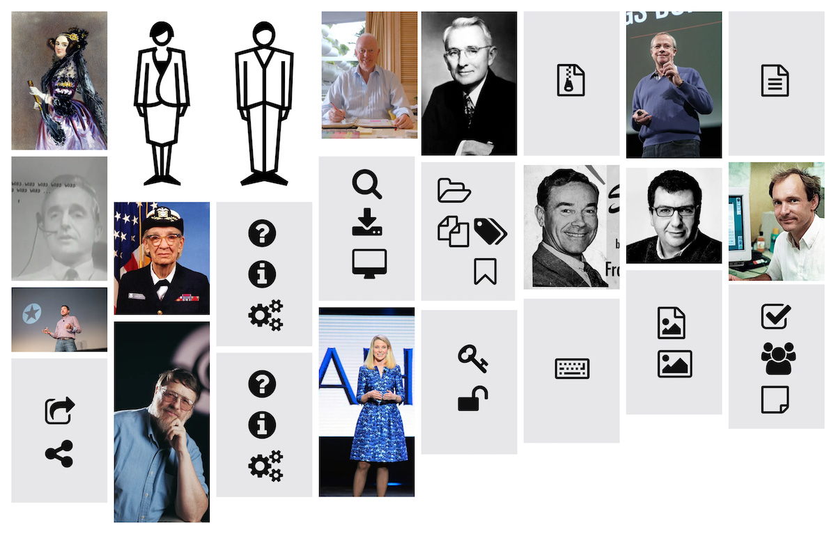Grandi personaggi, grandi invenzioni e grandi competenze. «Ecco alcune persone che ammiro e che hanno cambiato la storia dell’informatica e del management grazie alla dedizione per la propria passione». Insieme ai ragazzi abbiamo giocato ad associare la metà di un foglio di carta con i ritratti di personaggi importanti riunendoli all’altra metà con la corrispondente invenzione.