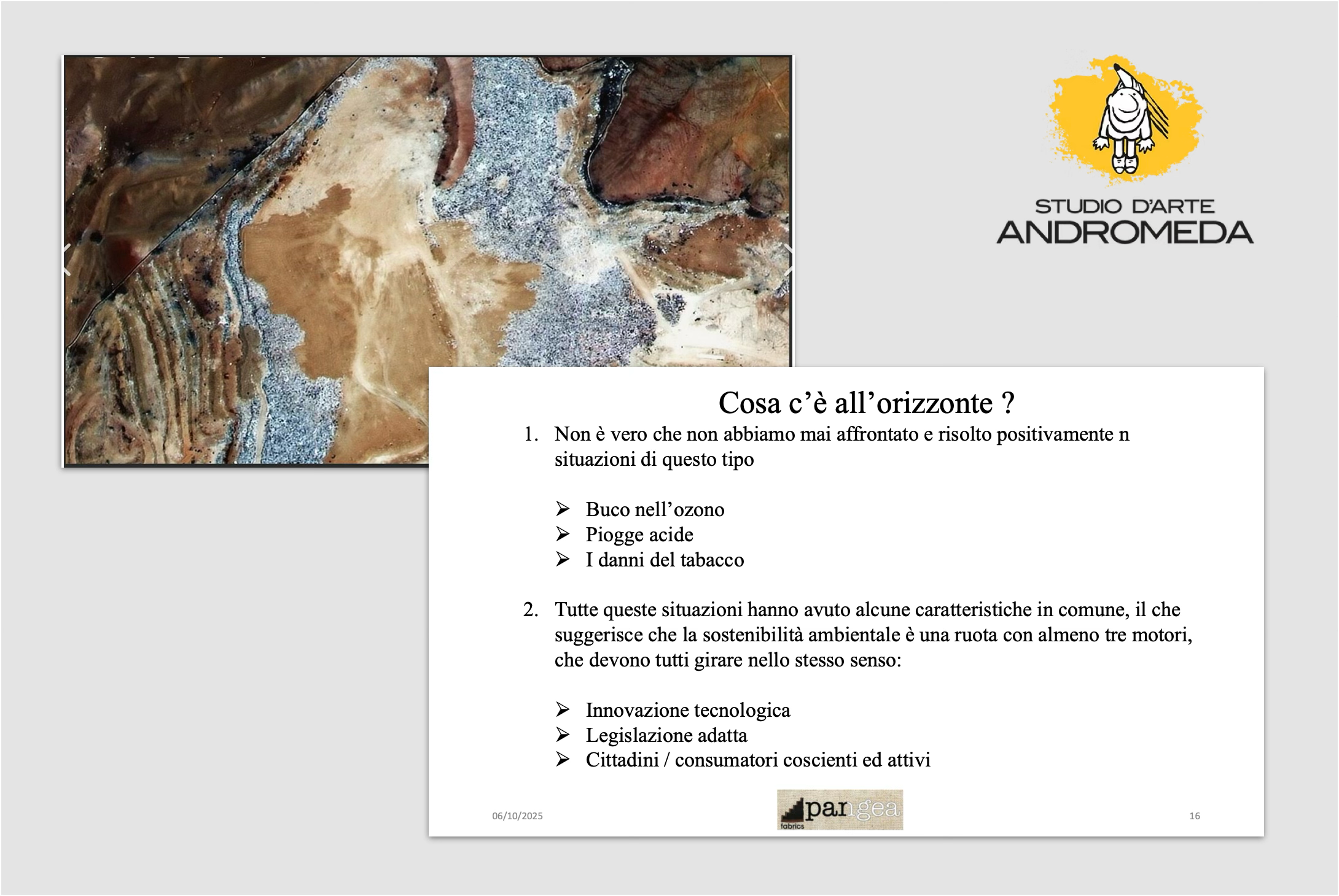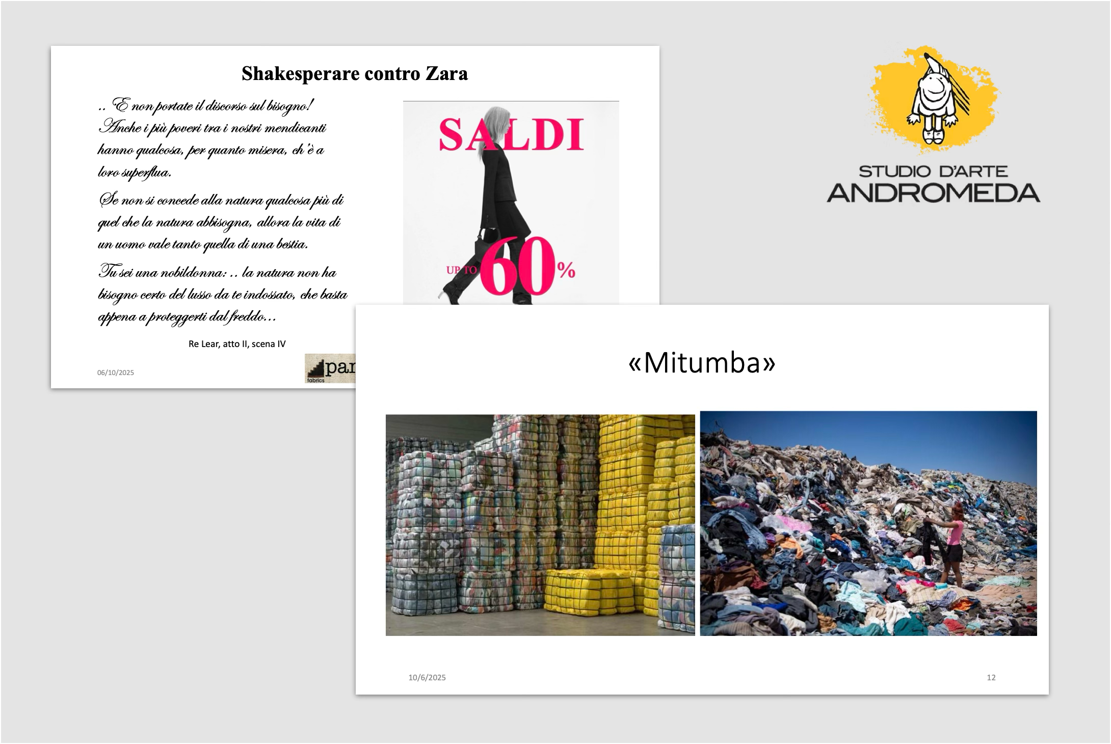 Domenica 5 ottobre 2025, presso l’associazione Andromeda di Trento, Pietro Valenti, fondatore di Pangea Fabrics, azienda che si occupa di consulenza, ricerca e sviluppo nel settore tessile, ha tenuto una conferenza dedicata a moda, sostenibilità e industria, dal titolo «Come si fa… a vestire la bellezza. Trame del futuro: bellezza, etica e sostenibilità nella “moda”».